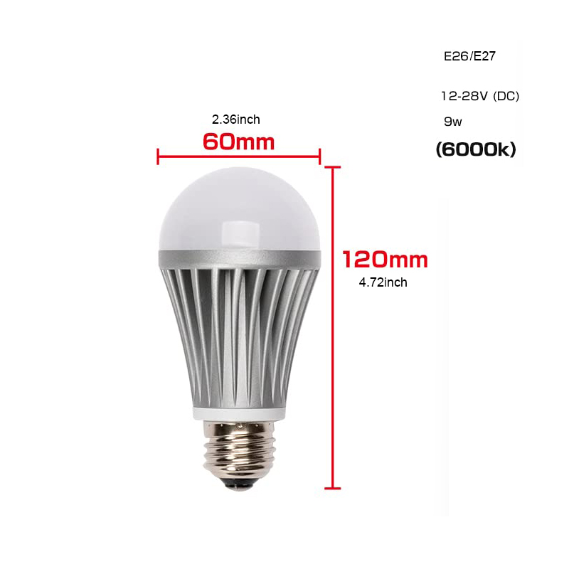 OmaiLighting LED Bulb,9W, E26/E27 Base, 12V-24V DC, 6000K Daylight, 1000 Lumens, Super Bright, Aluminum Shell, for Home and Store